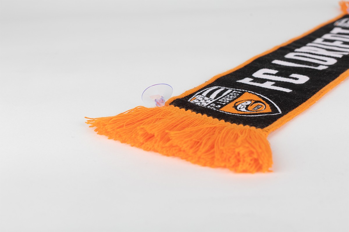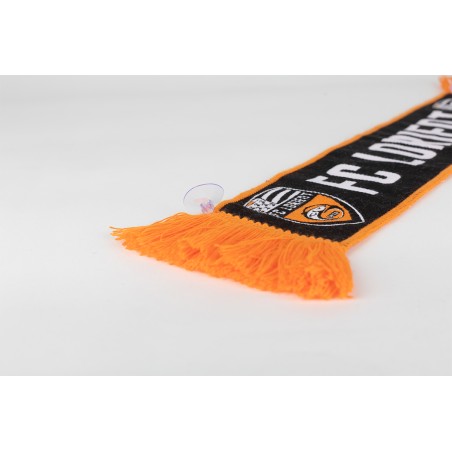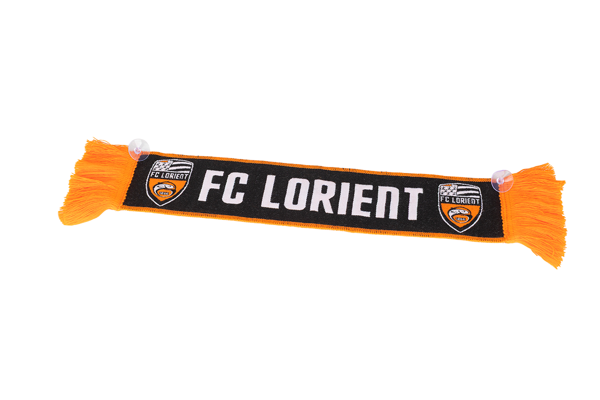 Mini écharpe FC Lorient à accrocher sur l'arrière du pare-brise de la voiture à l'aide des ventouses.