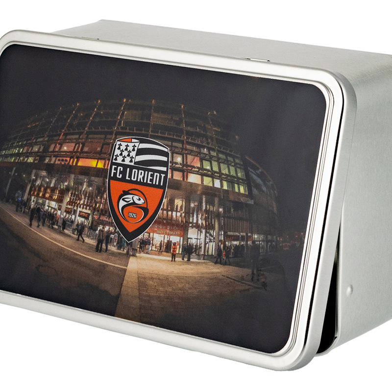 Boite en métal personnalisé avec le cliché du Stade du Moustoir "by night".