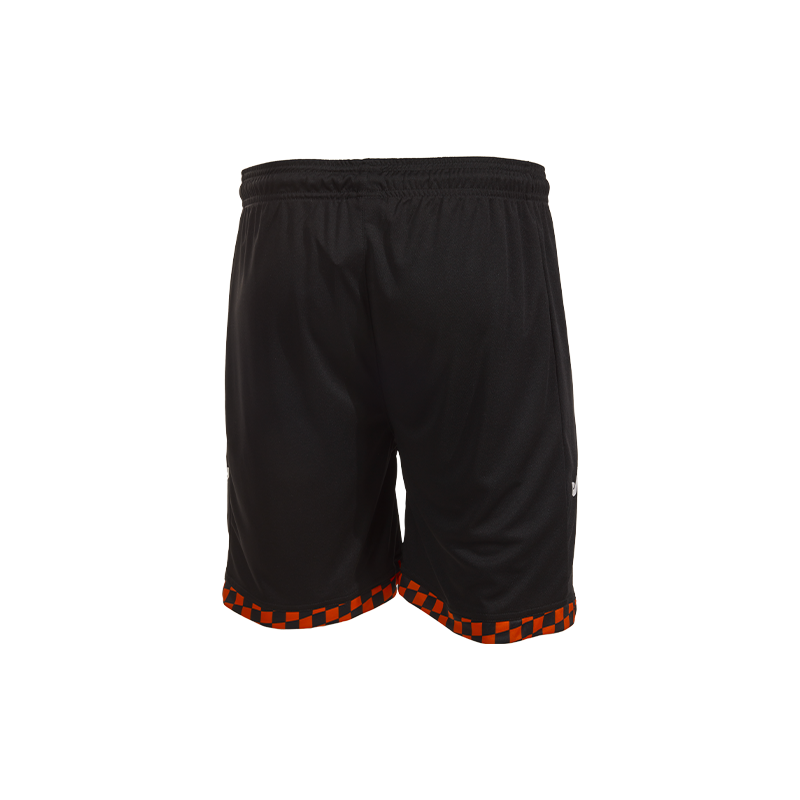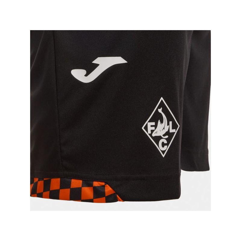 En hommage à l’histoire du FC Lorient, on y retrouve le blason qu’arborait le club à sa création, ainsi qu’une bande de damier tango et noir, le motif iconique du FCL, derrière chaque cuisse.