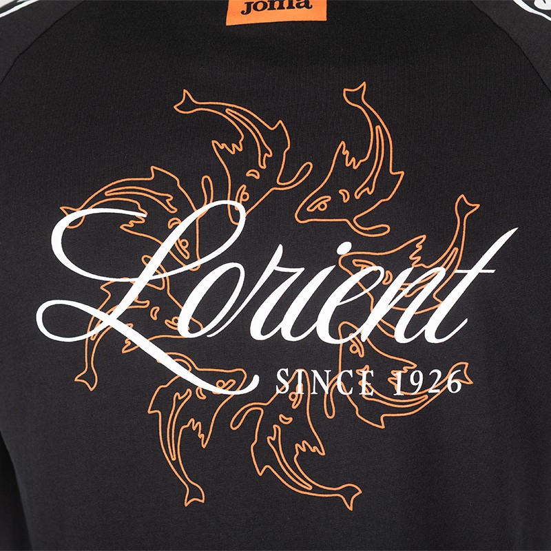 T-shirt Joma en coton noir à col rond. Grondin brodé sur le cœur. Mention « Lorient since 1926 » et motif du grondin en rosace dans le dos. Le logo du centenaire du club est discrètement brodé sur la partie inférieure.